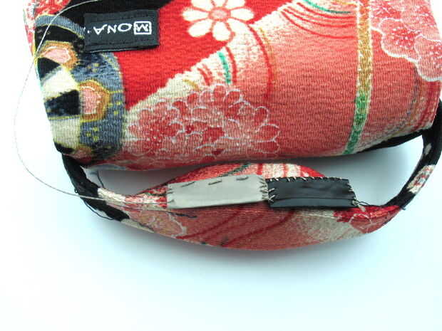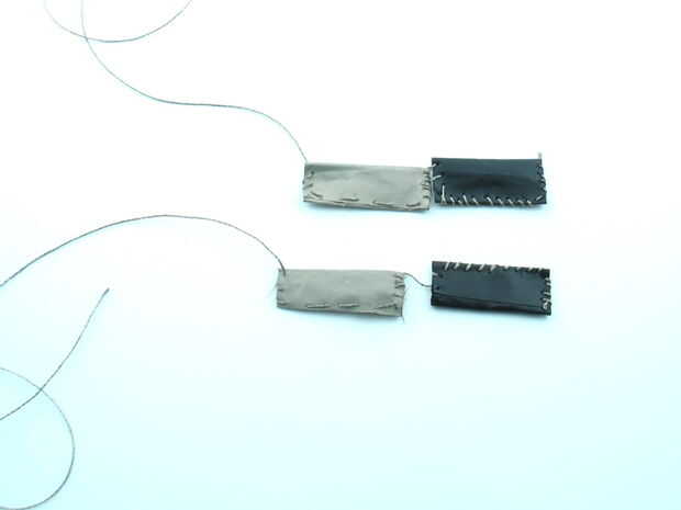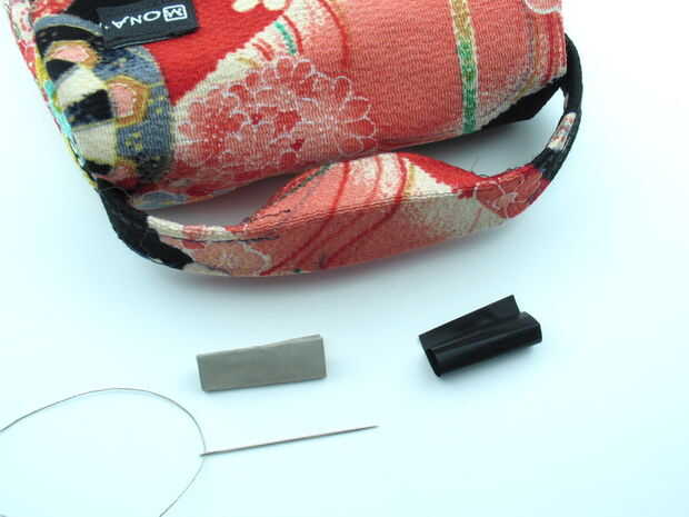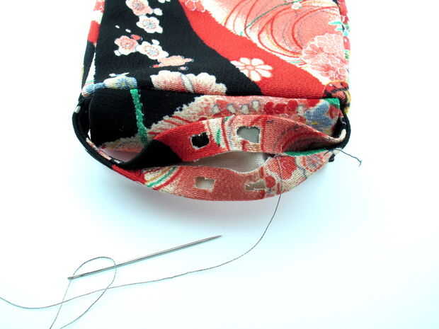 Guíese por estas piezas cosidas para donde cortar los agujeros en el mango. Necesitarás cuatro pequeños agujeros.