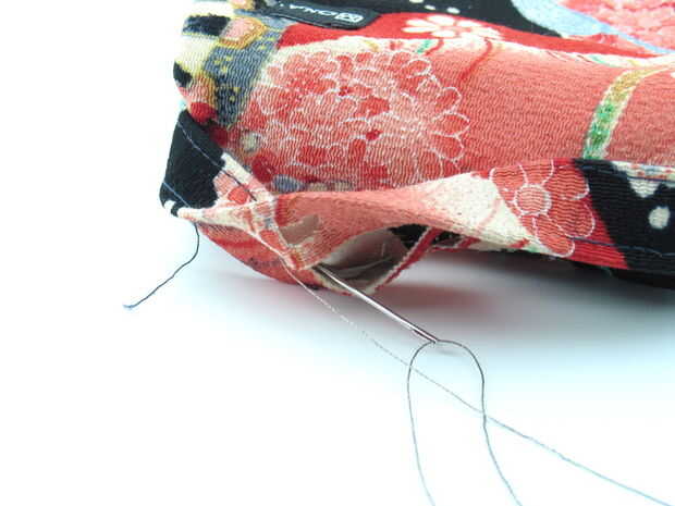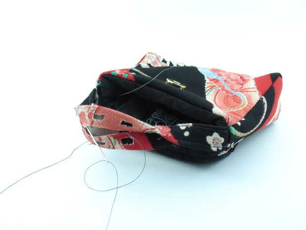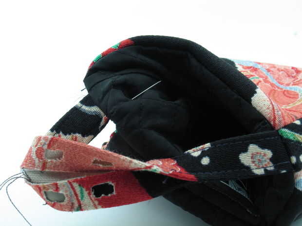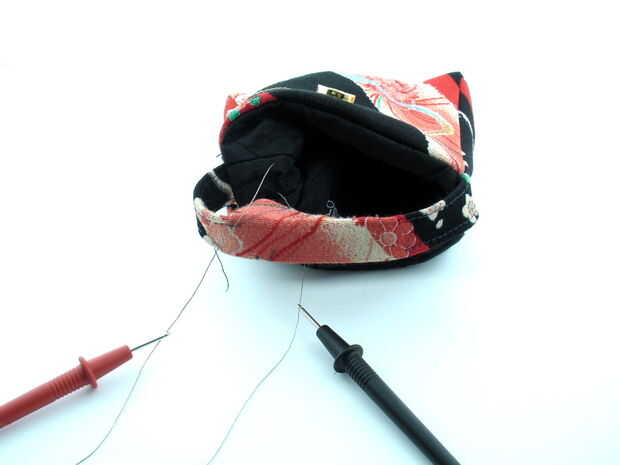 Ahora rellene el segundo par de tela conductiva en el pliegue inferior de mango, asegurándose de que no toquen el par superior. Alimentar el hilo conductor a través del mango como antes.