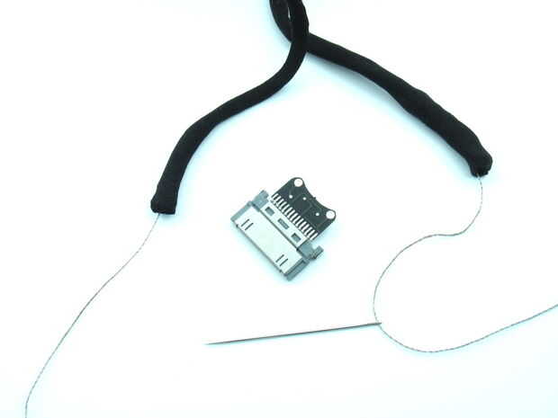 Utilice una aguja con un bucle por cada hoyo en el conectador del muelle. No importa qué hilo va a que agujero.