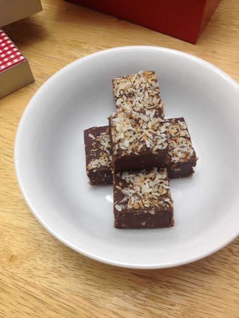 Enfriar en la nevera durante 2 horas al menos antes de cortar en cuadrados de 1 pulgada