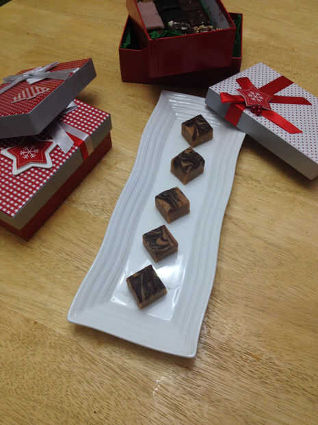 Vierta la mezcla en el molde y alisar la parte superior. Enfriar durante al menos 2 h y rebanada en cuadrados de 1 pulgada.