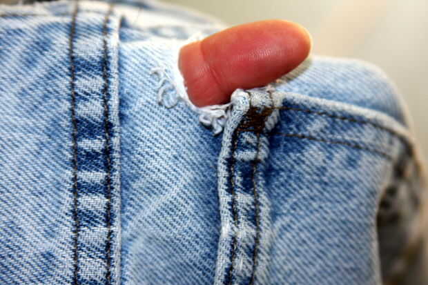 sé no es con estilo a tus jeans. Para algunos, los orificios son los que los hacen de moda! Pero soy "vieja escuela" (en otras palabras viejo) y los agujeros se me molestan. Especialmente esos agujeros molestos de la rodilla.