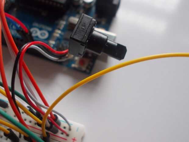 * Un potenciómetro: * termina de + 5V y tierra * limpiaparabrisas a pin (pin 3) del LCD VO