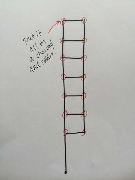 Lo blanquear tres veces (calentándolo un poco, pero no demasiado para las soldaduras el riesgo de rotura) para traer la plata a la superficie y mantenerlo brillante ya. Después de cada calentamiento, ponlo en el ácido y cepille con un cepillo de latón.