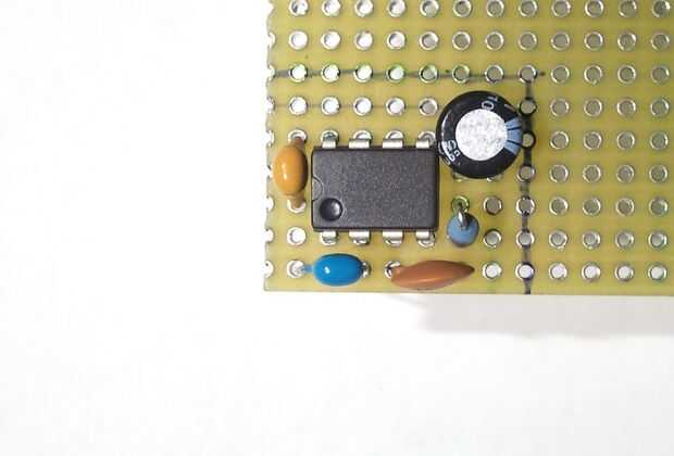 Antes de construir un circuito, siempre es una buena idea colocar los componentes en una placa de circuito para ver qué tan bien encajan las cosas. El cuadro que he usado es bastante pequeño por lo que todo tenía que montarse juntas. Las líneas azules marcan en el tablero muestra cuán grande puede ser mi circuito para encajar bien en el cuadro de.