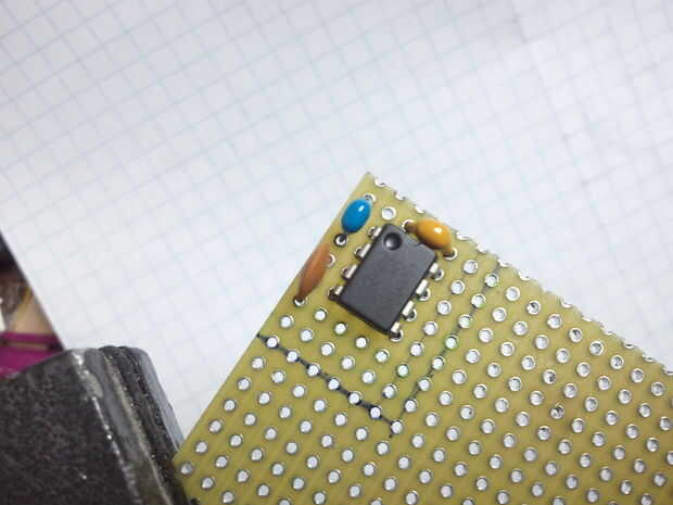 Lo siguiente para la soldadura es 0.1μF condensador. Uno de su liderazgo debe ir al pin 3 y el otro tiene que ir a la resistencia Ω 100 k y el micrófono; Este cable se dejará sola por ahora.