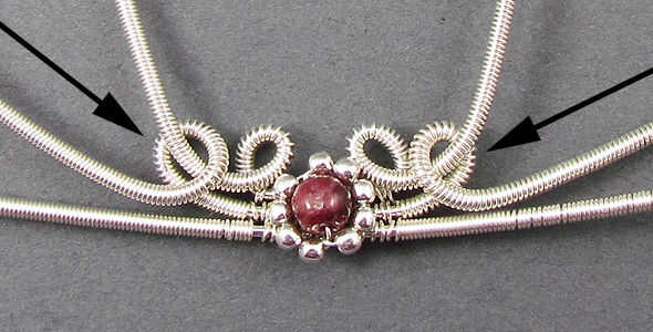 Trabajar con el hilo medio, crear un bucle a cada lado del centro. Envuelva el lazo alrededor del alambre del paso anterior.