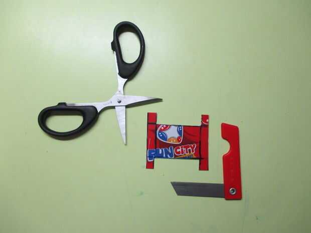 Cortar la tarjeta como se muestra usando las tijeras y una hoja.
