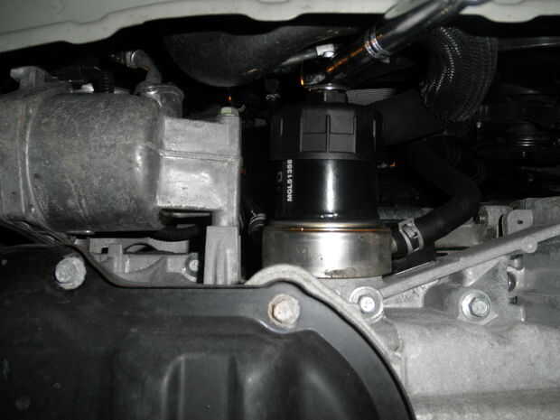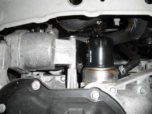 Mientras que el aceite se extrae puede hacer su camino a su filtro de aceite. La ubicación de este varía de vehículo. El vehículo de "prueba" que estoy trabajando en las fotos es un 2012 Nissan Versa y su en la parte inferior del motor justo detrás del parachoques delantero. Un filtro muy fácil llegar. Otro ejemplo es mi 2003 MINI Cooper que tiene un bote de aceite en la parte superior el motor cerca de la parte trasera de la bahía del motor. Cada coche es diferente. Si no puede encontrar el filtro de aceite, consulte el manual o Google la marca y modelo para saber su ubicación en el motor de la bahía.