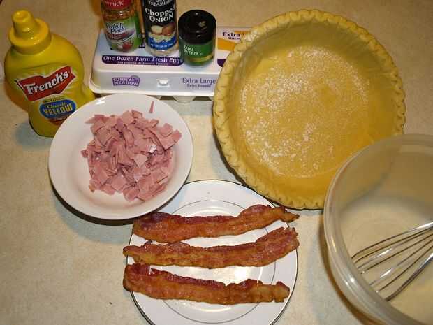 sirvo esta quiche fácil más a menudo con fruta fresca. He hice esto para la alimentación de la compañía, brunch, cena y como una bienvenida para el plato de barrio!  Casi siempre uso tocino sobrante, pero a veces Añadir jamón un poco si algunos tengo en mano, ya que tengo una familia de voraces devoradores! Mi parte favorita es que usar lo que sobra carne y verduras que tengas en la nevera. Se pueden sustituir el chorizo, calabacines, tomates... ser creativo! He utilizado un preparado congelado descongelado de tarta para cortar tiempo y costes, pero se puede sustituir su propia tarta casera. Esto se congela bien una vez horneado, grandes cocineros ocupados!