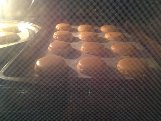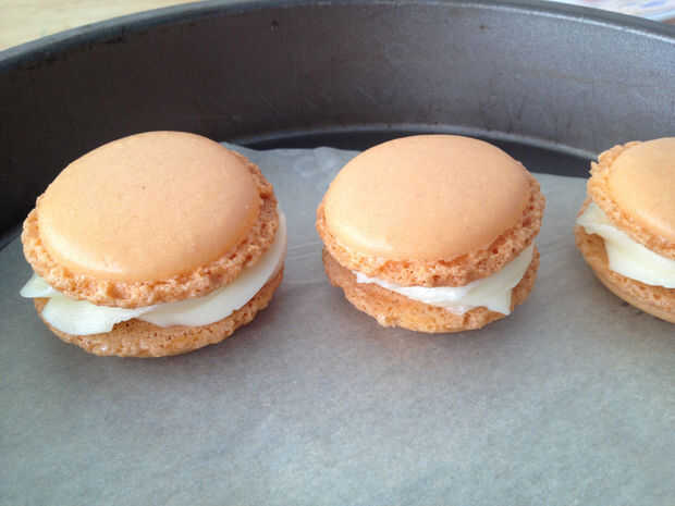 Macarons están listos cuando están un poco levantado y firme al tacto (o lo que la red les referiría como pies)