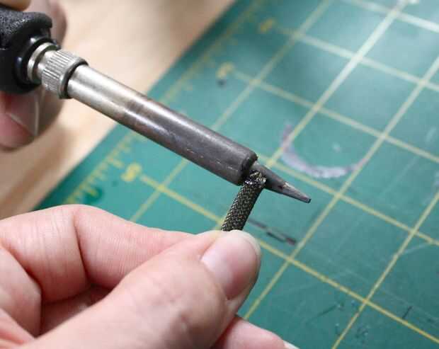 El paracord encanta fray en los extremos, por lo que necesitaba para cerrar bien. Extraño como es, yo no tenía un encendedor, pero tenía un soldador, que funciona bien y le da más control sobre la forma del extremo de un encendedor. Compruebe los cuadros para la diferencia entre cautín y encendedor (que más tarde adquirí). Ambos trabajan bien.