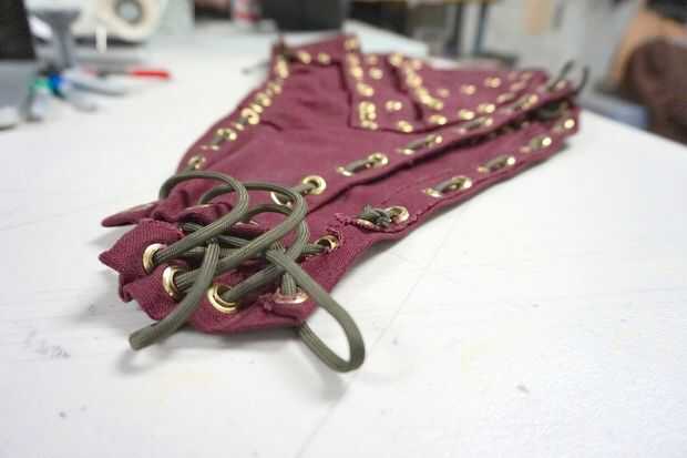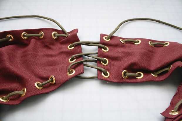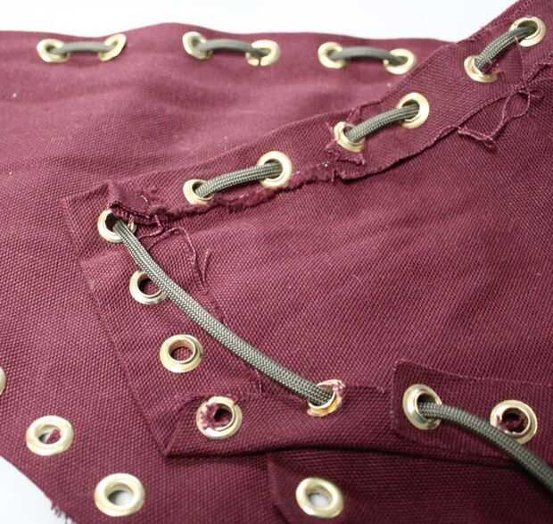 Planeaba usar un cordón para encaje hasta la espalda, pero corrimos al azar a través de una bobina de paracord en Crashspace, por lo que decidí incorporarlo. Para sujetar la correa en la parte posterior entonces, simplemente encaje como un zapato y unos nudos en los extremos de la cuerda para evitar que se deslicen accidentalmente hacia fuera.