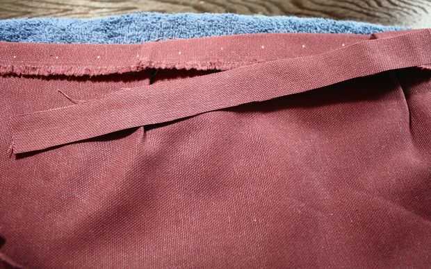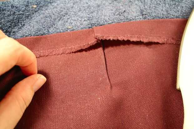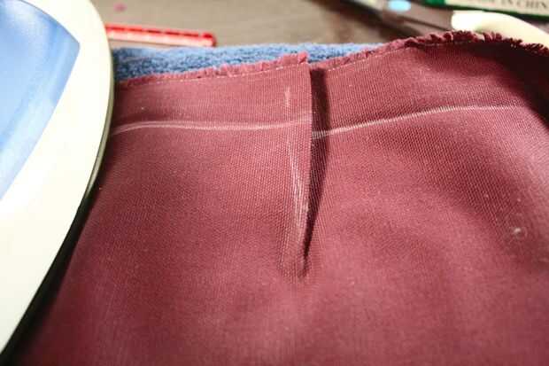 Verás en las fotos que necesitaba para proporcionar algún apoyo para mantener a los dardos en el lugar, así que hice un apoyo similar tiras (con al menos unas pocas pulgadas a cada lado del dardo) y cubrió encima de los dardos doblados y planchados. Grommeting estos junto con la aleta de costura mantendrá los dardos en su lugar.