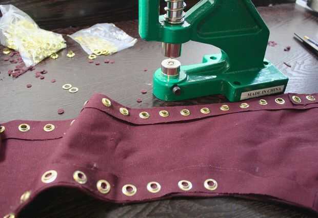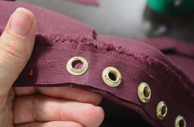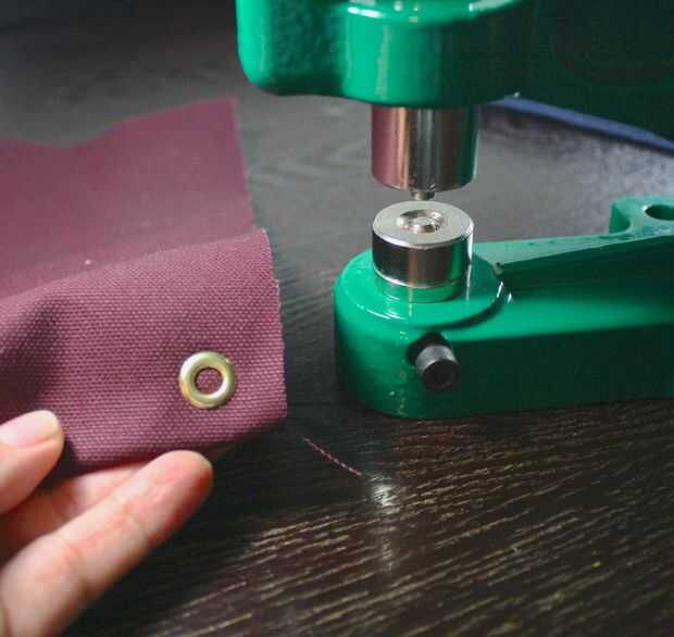 Quisiera nunca nunca quiero hacerlo sin una máquina de ojal, y que probablemente no hacerlo sin autoperforantes arandelas bien. Poner en más de 200 ojales es bastante difícil con la máquina, sería tortura hacerlo manualmente con un martillo. Incluso no quieren pensar en ello. Tener una máquina de ojal es muy bueno si va a hacer un montón de ellos. Si sólo tienes que hacer un par, es sorta overkill, a menos que usted tiene toneladas de dinero para quemar.