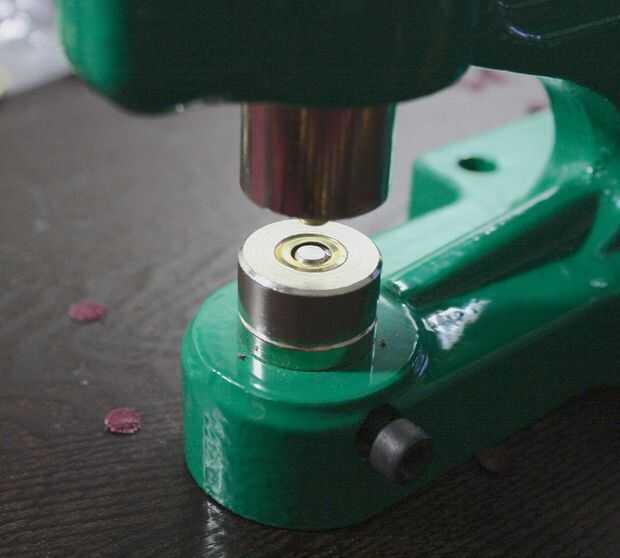Dicho esto, la máquina es un poco divertido y terapéutico si tienes cierta frustración a trabajar. Poner los dados apropiados en su lugar, luego poner la arandela en la parte inferior y el ojal en la parte superior. La parte superior de la matriz es magnética, que es útil para mantener el ojete en su lugar. Encontré poniendo el lado convexo de la arandela para arriba trabajado mejor para una fijación segura. Asegúrese de que quede centrado correctamente en la ranura (que, incluso sin imanes, hace un trabajo sorprendentemente bueno de mantener en su lugar mientras estás deslizando a la tela en). Deslice la tela entre ellas, delantera lado hacia arriba, línea de su marca en el centro (usted puede suavemente baje el mango y haga una pequeña marca en la tela para comprobar la alineación) y luego empuje hacia abajo con el mango. Luego un poco más.