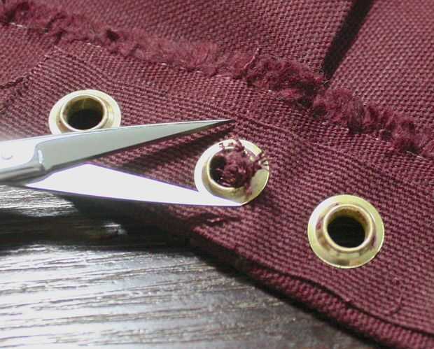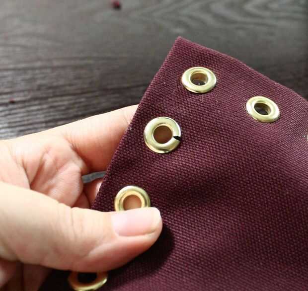 Este paso es donde un montón de mi informe sobre esta máquina. La máquina sí mismo es satisfyingly pesado y robusto y hace un buen trabajo haciendo los ojales. Los troqueles magnéticos son grandes. He visto mejores anillos, pero no son malos. Como he dicho, tenía unos ojales partida, pero eso es en gran parte evitable con la práctica. Las arandelas son sutilmente fuera del centro, que puede conducir a los ojales no perforar los agujeros hacia fuera todo el camino alrededor. Estos sostenga muy bien, pero vas a tener que cortar el los círculos de tela (que es por eso que enumeré tijeras pequeñas y afiladas en los materiales). Puede evitar este problema comprobando su lavadora antes de poner em en, y te dan 300 de cada tamaño, por lo que hay un montón de piezas de repuesto.
