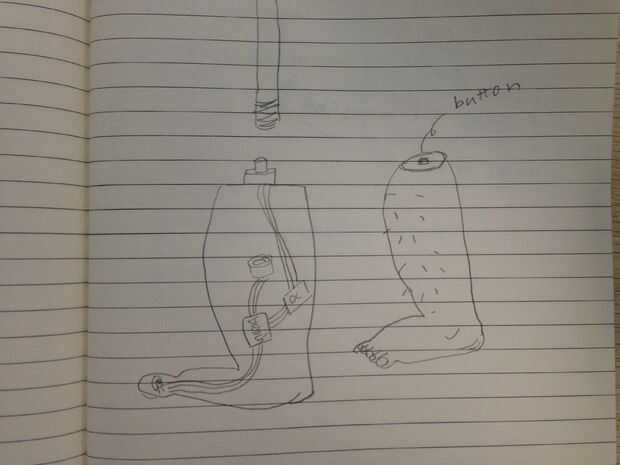 Foto 1 es el bosquejo de la idea de este proyecto. Quiero crear algunos ruidos y luz cuando pulsa su botón. Los materiales involucrados en este esquema son: