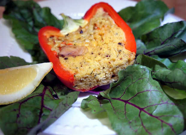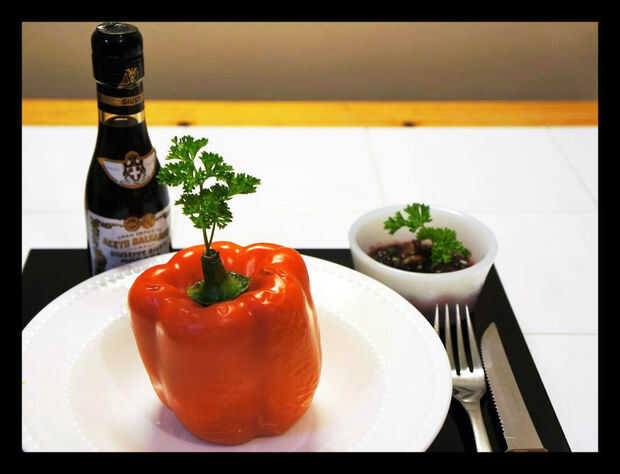 He añadido ingredientes frescos a una tienda compraron arroz mezcla y ajustado el método de relleno el pimiento de forma no convencional de una apelación de cogida del ojo.