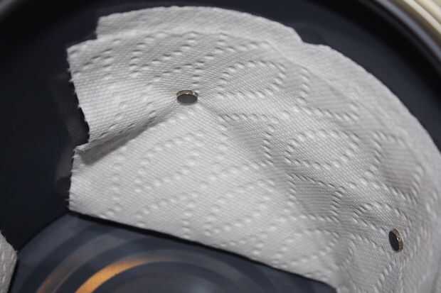 En segundo lugar, preparar una sala de baño de acetona (ver este excelente tutorial de hacer). Simplemente utilicé una lata de pintura galón acero, algunas de papel toallas y cuatro imanes. Coloqué las toallas secas a lo largo del interior de la can y aseguró allí con imanes. Luego me satura las toallas con acetona pura y sacudió hacia fuera cualquier exceso (hacer esto fuera de cualquier fuente de llama). Usar la tapa como mi base, había bañado el frente del bisel en vapor de acetona durante 3 horas y la parte de atrás por 2 horas. Asegúrese de que usted no deje que el toque de acetona el real imprimir. También, utilizar una tapa de metal para apoyar la parte posterior del bisel para que puede quedar completamente plano. Dejar las piezas secar al aire libre durante unos treinta minutos antes de la manipulación.