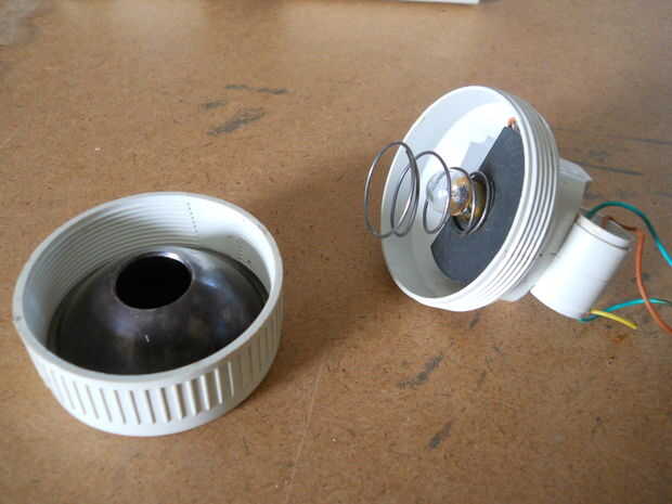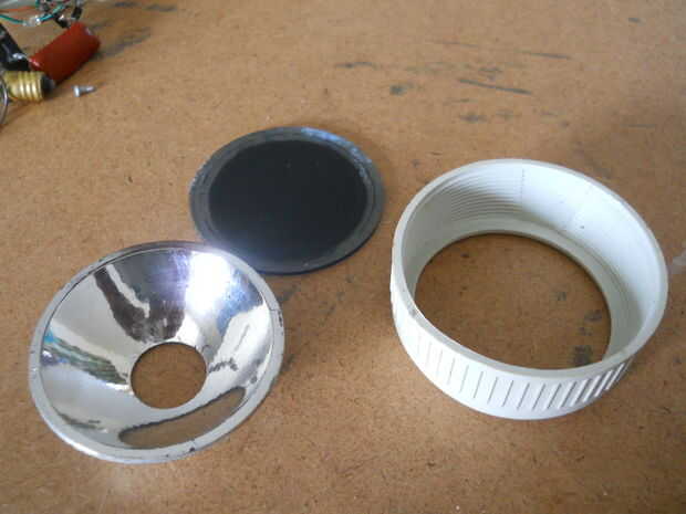 este es mi segundo ojo de angel con LED y bajo costo para hacer.Paso 1: Piezas necesarias Bombilla de FaroSMD LEDlata de aerosol viejopapelCartón gruesoTuerca y pernoIC 7805resistencia de 10 ohmiosCintaCorte la lata de aerosol para que podemos utiliz