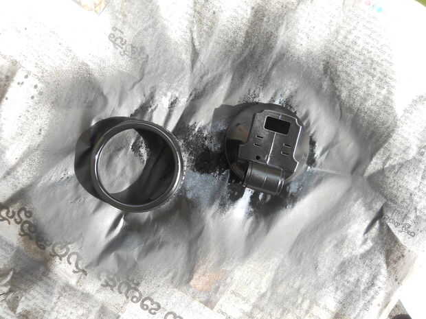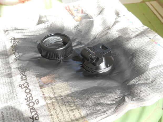 he utilizado aerosol para pintar el cuerpo. Después de que se seque la pintura usé capa clara por lo que brilla.
