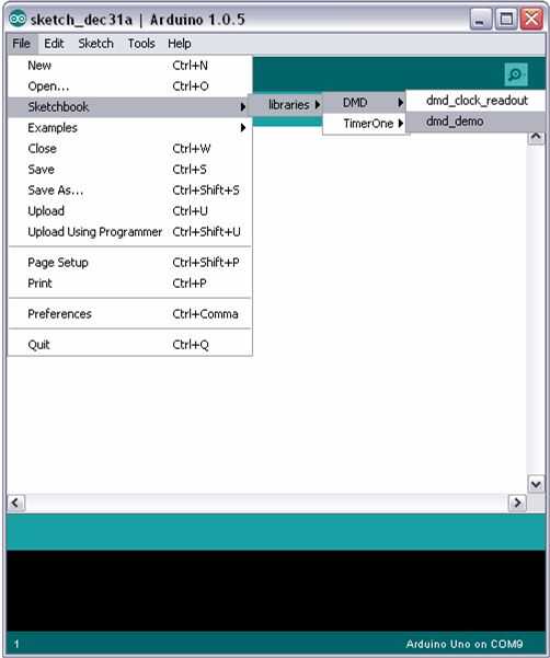 Usted puede comprobar que su dmd funciona correctamente ejecutando el bosquejo de dmd_demo encontró en la biblioteca DMD que se acaba de descargar. Una vez subido a tu arduino, conectar y el dmd con el cable de enlace como se muestra por las imágenes.