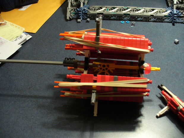 esta es un arma de gatling KVG que construyó y es muy fácil de construir y no tiene muchas piezas. Tiene 8 cañones y dispara cerca de 10-20 pies, que no es grande pero tiene un índice del fuego de cerca de 8 cada uno o dos segundos. No es mano por lo