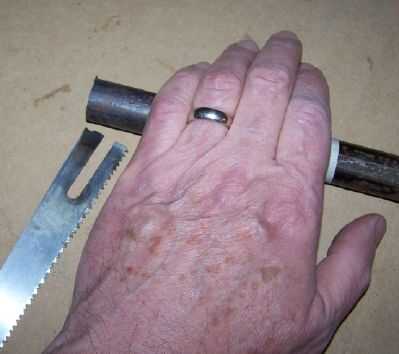 Estoy utilizando tuberías de hierro negro de 1/2 pulgada.  Envuelve con cinta de enmascarar para marcar más fácil.  El mango debe ser tiempo suficiente para que la hoja y mi mano.