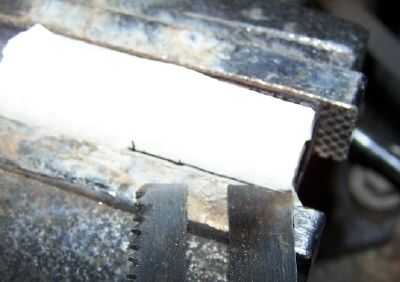 Cinta adhesiva funciona bien para una ranura de la cuchilla de la marca.  Hacer la ranura un poco más larga que el ancho de la hoja.  I colocar el tubo en una prensa y utilizar la mordaza como una guía de marcado.