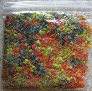 Precalienta el horno a 375 grados. En un tazón mediano, combinar la mezcla de galleta de azúcar, mantequilla, huevo y machacada cereales Trix. Añadir unas gotas de alimento verde del colorante (opcional) y mezclar bien.