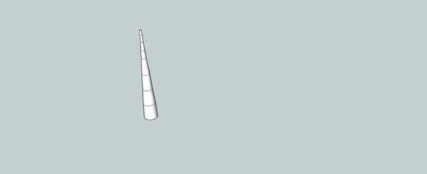 Cono segmentado: utilizar la herramienta de escala para reducir cada círculo, haciendo cada uno más pequeño cuando vaya de un extremo del cilindro a otro. Su más fácil si mantiene pulsada la tecla ALT mientras se escala, así que el escalamiento ocurre alrededor del centro del círculo