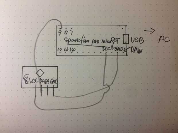 el receptor es más sencillo, que sólo necesitas alambre el Arduino Sparkfun Pro Micro al receptor RF 315