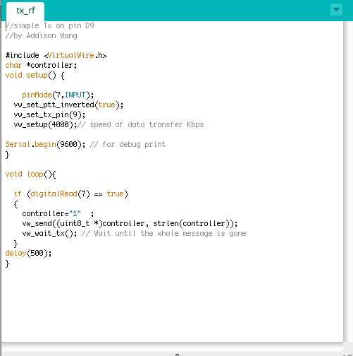 VirtualWire es una librería de Arduino que proporciona características para enviar mensajes cortos, sin abordar, retransmiten o de reconocimiento, un poco como UDP sobre wireless, usando ASK (amplitud shift keying). Soporta un número de receptores y transmisores de radio de bajo costo.