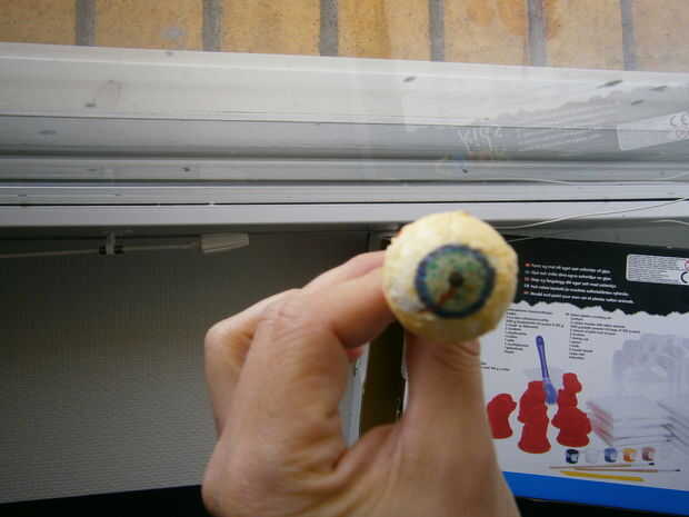 los ojos brillantes te siguen caminando por la calle.  Un efecto espeluznante que es barato y fácil de hacer!  Pones uno en cada ventana para un efecto realmente escalofriante!  Hecho de cajas de cereal, cartón y papel maché.Algunas de las críticas q