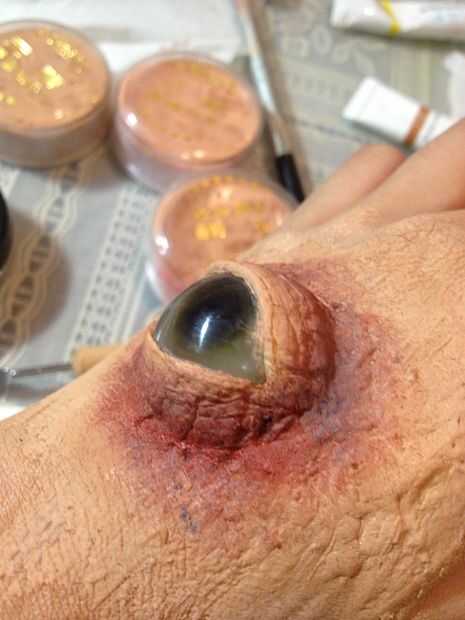 Usar marrón oscuro o negro para delinear el párpado y las sombras. En realidad, si realmente quieres ir a por ello, podría probablemente utilizas algún espíritu goma y pelo falso para hacer las pestañas. * se estremece *