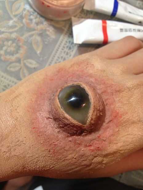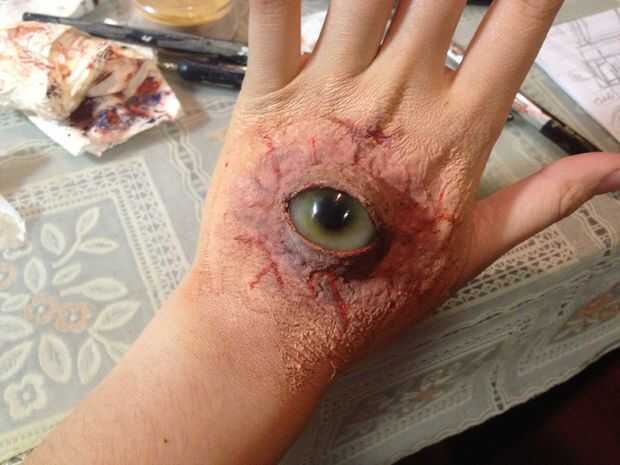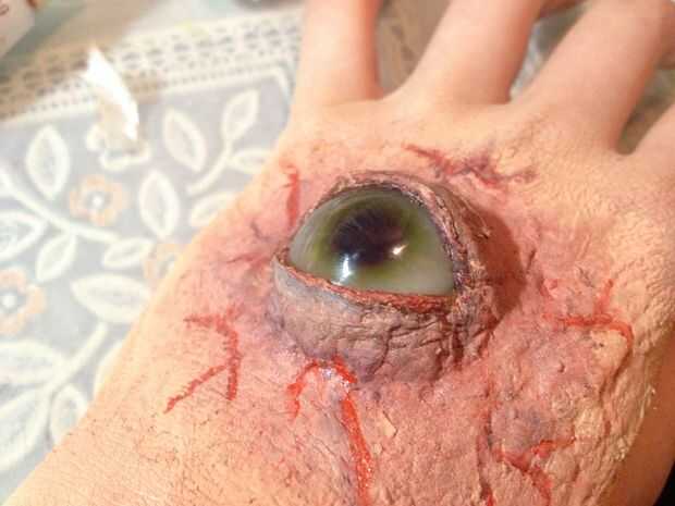 Como se puede ver en mi primera foto, hizo un poco demasiado oscuro (se ve super cool en la foto, aunque!) así que aligeró para arriba con pintura color carne. Tratar de que los rojos oscuros en las grietas, se ve muy espectacular si lo haces.