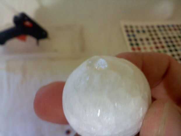 3 con la pistola encoladora realizar un pequeño punto de pegamento en el globo ocular