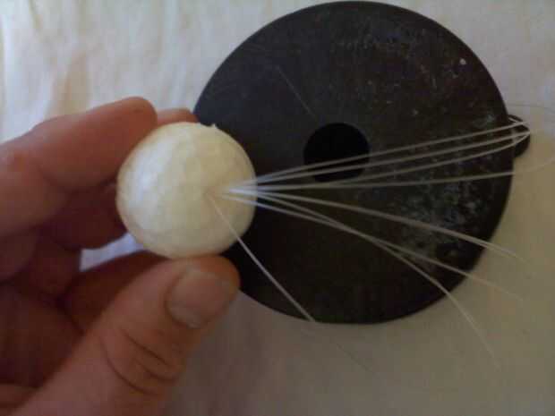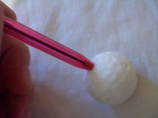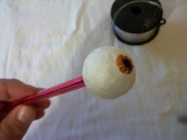 3 tomar un lápiz y haga un orificio pequeño en el ojo falso "opuesta al lado de la pupila"