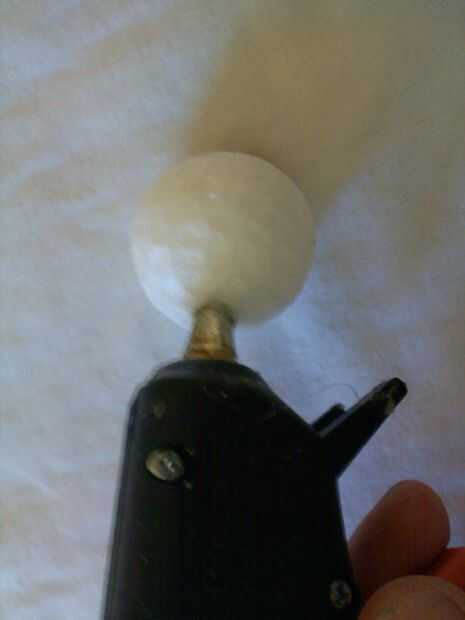 4 con la pistola encoladora pone pegamento en el agujero e Inserte los extremos al ras de cadena de la pesca dentro de los ojos y deje que se seque.