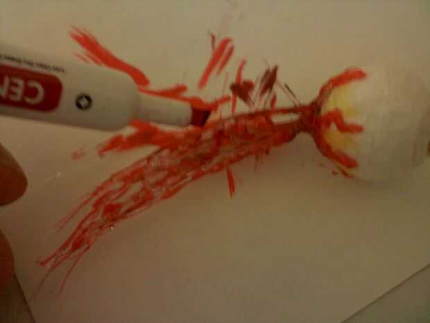 Se trata de un apoyo fácil y buen hacer.Paso 1: fuentes de Cráneo (conseguido de ciudad parte 4 6.99)balón hinchablepegamentopapel higiénicorociar sangre (consiguió esta uno de wallgreens 4 de 3.00)pintura negra y pincelPaso 2: primerPara hacer que e