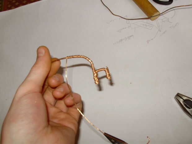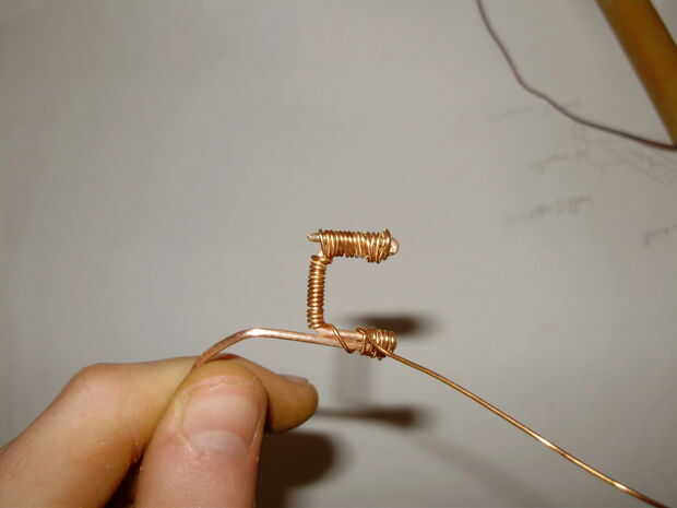 esto es bastante fácil. tomar el alambre fino, que debe ser tan brillante como sea humanamente posible y envuelva en el frmae, razonablemente bien. Recuerde mantener algunos para colocar la lente más adelante.