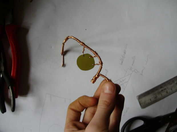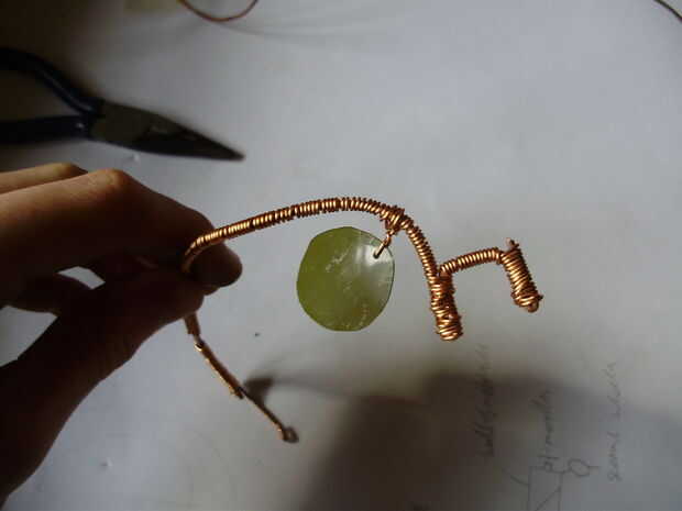 Esta pieza utiliza vidrio curvado y soldadura de plata para encerrar un conjunto de tentáculos de cobre martillados. Los tentáculos están llegando de los restos de cristales rotos, cobre y otros elementos.Como esta pieza se mueve alrededor, los "rest