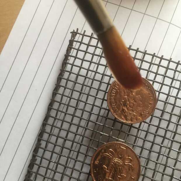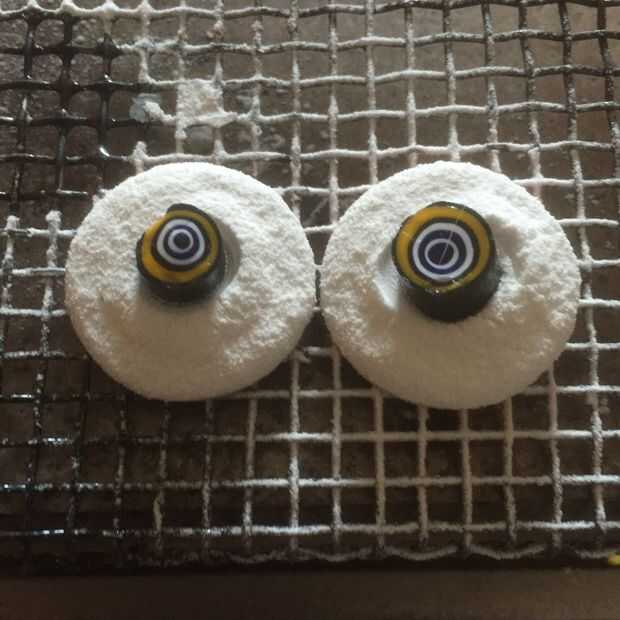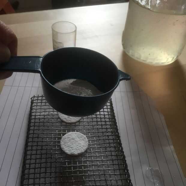 Espolvoree el esmalte blanco en un colador.