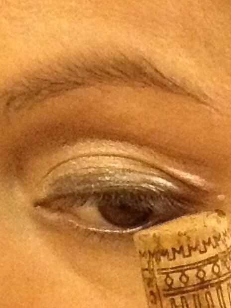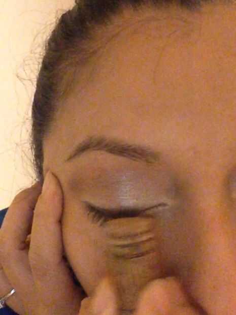 Paso 1: Empezar con un primer para los párpados para no arrugarse. Sólo estoy usando mi lápiz de ojos jumbo NYX en leche.Paso 2: Tomar un color marrón o negro oscuro y poner todo los párpados-incluso en el pliegue. Estoy utilizando Blaze de humo báls