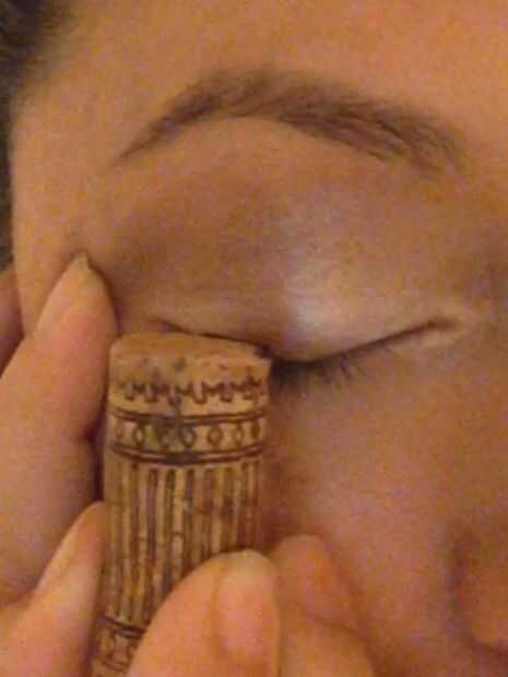 Una vez has dejas el corcho enfriar, frote el corcho a lo largo de sus líneas de pestañas superior e inferior. Usted tendrá que repetir el paso cuatro para adquirir el tono deseado de la oscuridad de los ojos de corcho.