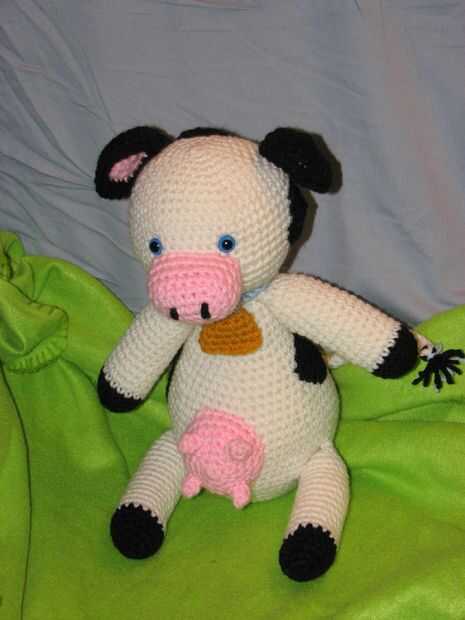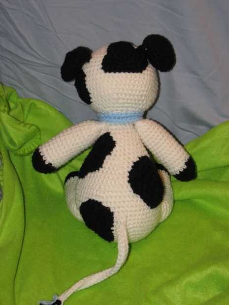 Sus puntos son de ganchillo en formas libres y cosidos encima de su cuerpo y la cabeza.