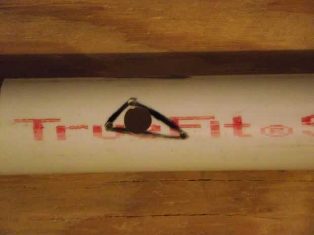 Nota: Asegúrese de descansar el tubo en un banco de trabajo durante la perforación. No apoyarla sobre su mano o la pierna, en caso de la broca se resbale o pasa por el lado opuesto de la PVC.