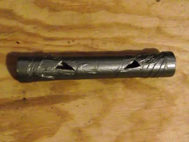 OPCIONAL: La luz puede escapar hacia fuera los lados del tubo, a través de los fondos de las luces de té. No quieren cubrir los fondos permanentemente porque los necesitará para acceder a los interruptores y tal vez el compartimento de la batería, pero si hay demasiada luz escapando puede tratar de cubrir los extremos con un pedazo suelto de cinta y cartulina.