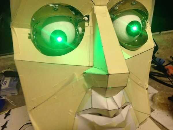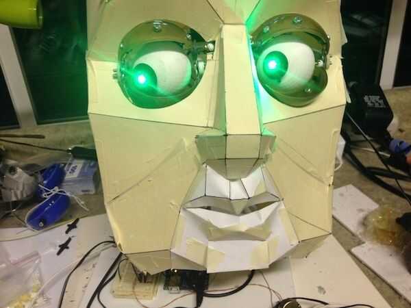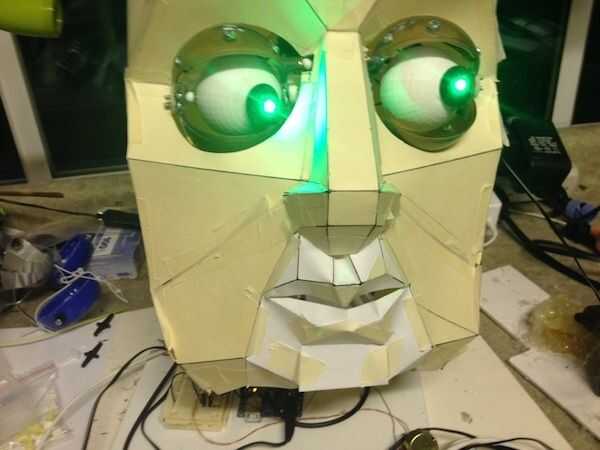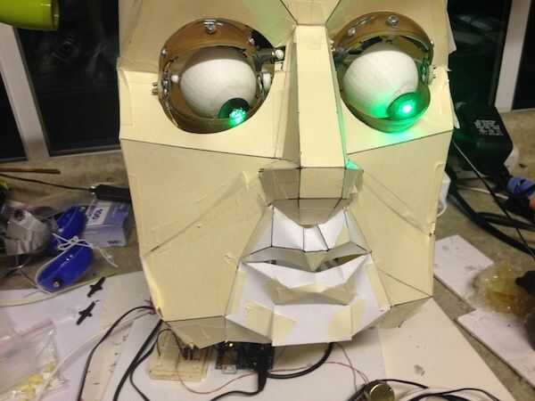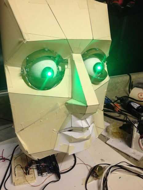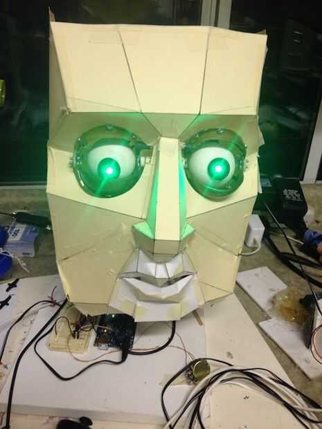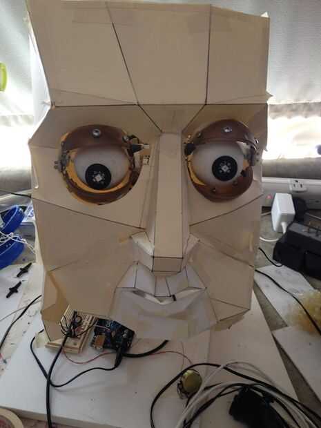 Todavía tenía el programa para usar el Wii Nunchuck, así que moví los ojos para ver si había algún problema con los mecanismos de animatronic del frotamiento contra la cara de la cartulina.
